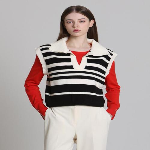 [보니스팍스][보니스팍스(Bonispax)] 스트라이프 카라 니트 베스트 (택가격 98000원)