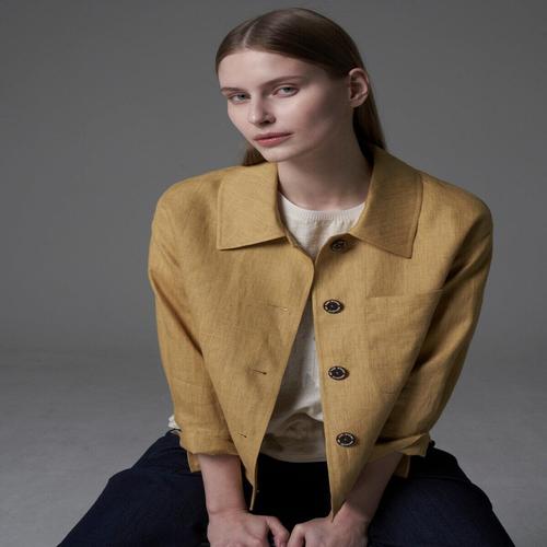 [올리비아로렌]VOCFU5M3131 스탠카라 린넨 자켓_GN
