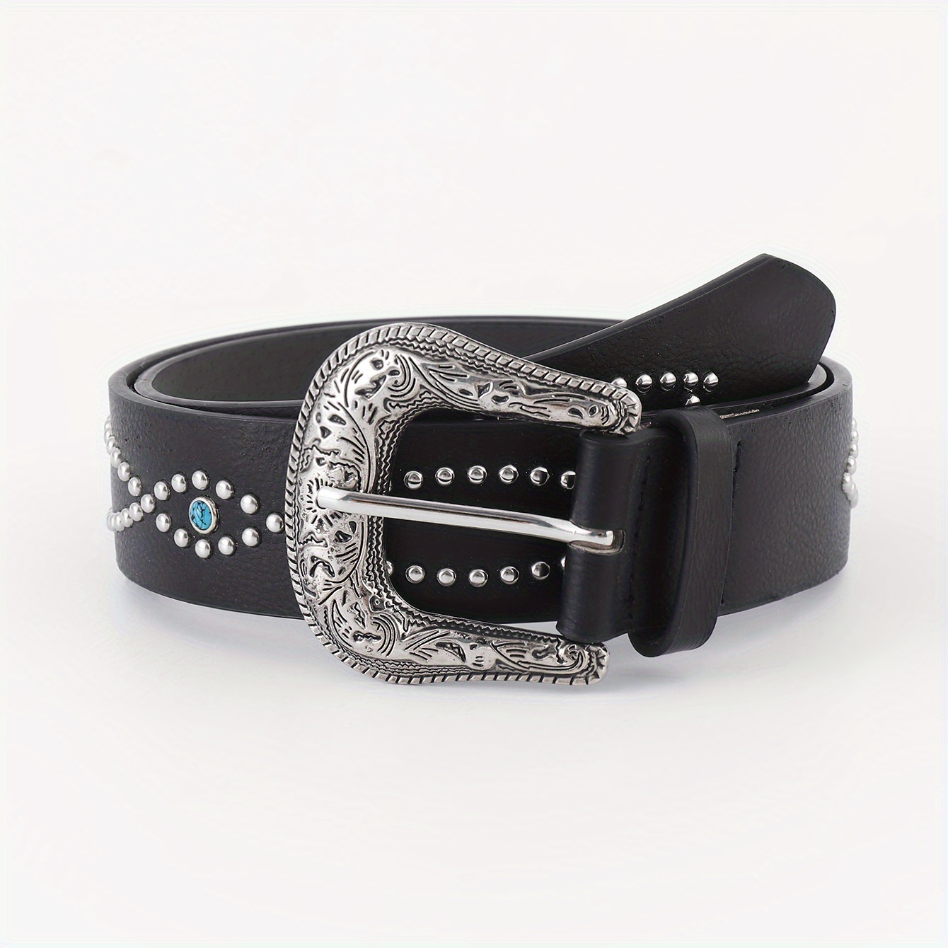 TEMU 남성용 클래식 헤비 듀티 블랙 벨트, 정품 가죽 소재, 펑크 스타일 리벳 및 3핀 버클 특징