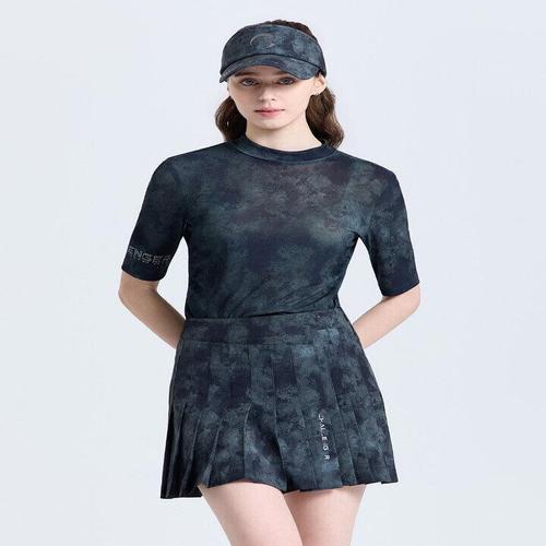 TEMU 스타일리시한 샤이니 세미 시어 이중 레이어 메쉬 디자인 여성용 섹시한 반팔 하이넥 패셔너블한 활용도 높은 풀오버 베이스 레이어 티셔츠 탑, 데일리 캐주얼웨어용