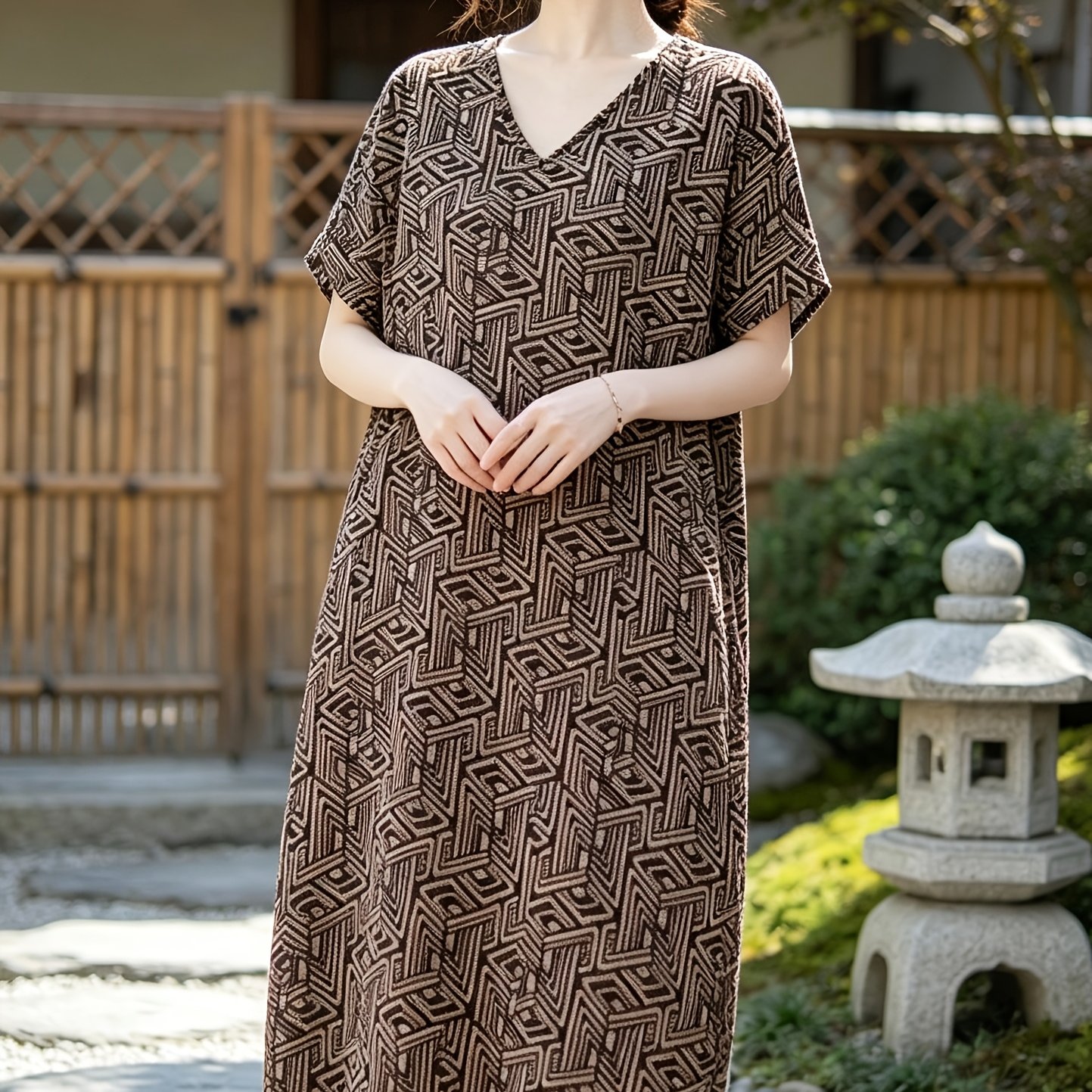 TEMU 세련되고 우아한 린넨 플로럴 프린트 봄/여름 미디 기장 드레스 여성 플러스 사이즈 캐주얼 해외 무역 스커트 커버업