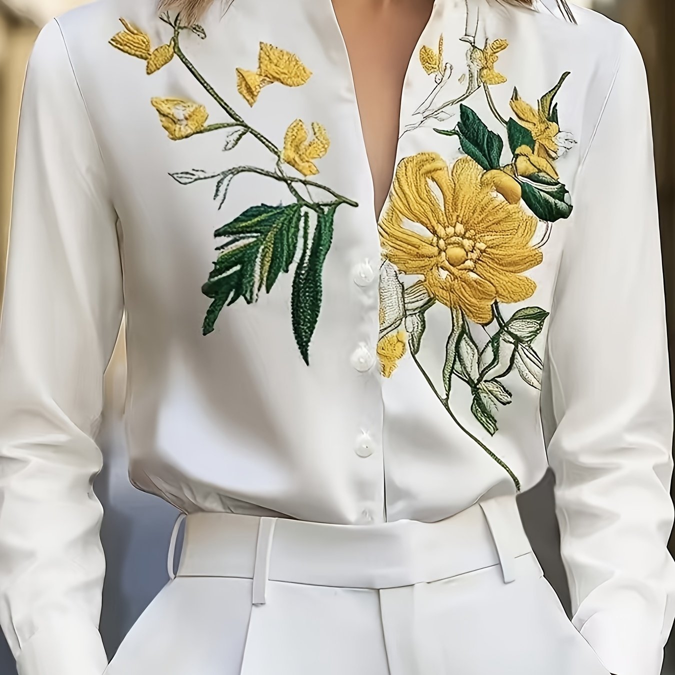TEMU 2025 여름 신상 여성 플로럴 디자인 긴팔 셔츠, 캐주얼 바캉스룩 + YTD에 완벽