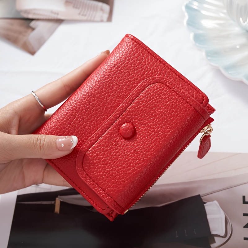 TEMU 시크한 여성용 컴팩트 지갑, 측면 지퍼 - 슬림한 단색, 가벼운 & 접이식 디자인, 동전 및 필수품용