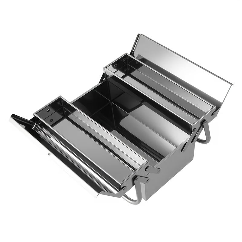 TEMU 휴대용 캔틸레버 스테인리스 스틸 공구 상자, 가정 및 자동차 수리용 접이식 금속 공구 상자