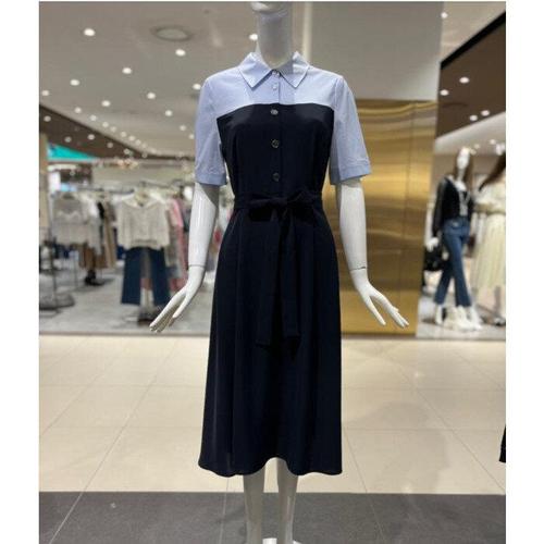 SI 씨 망사 배색 오픈 칼라 원피스 RE H