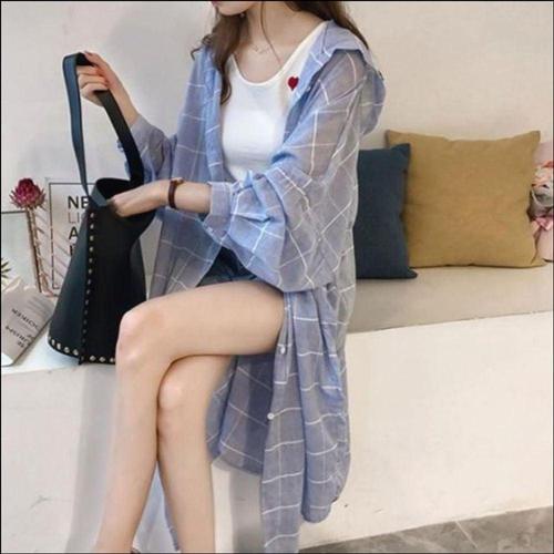 원피스 후드 롱셔츠 긴팔 시원한 체크 여자 롱남방 WFKBX4A