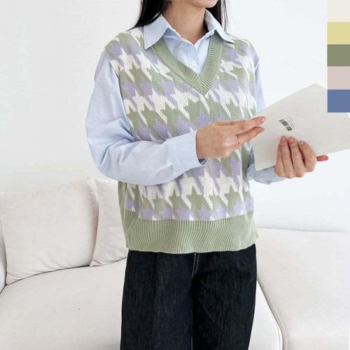 [셀럽하우스]PPT QAHE7232 하운드패턴 브이넥 조끼 니트조끼베스트 2L 니