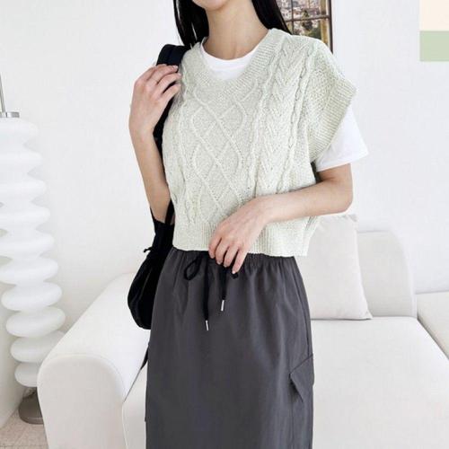 [셀럽하우스]2L IDRH2534 PPT 크롭 브이넥니트조끼 베스트 니트 여자 플레