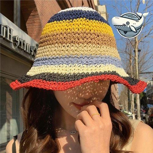 모자 야구모자 여자 밀짚 라탄 레인보우 버킷 벙거지 모자 WFJX03B