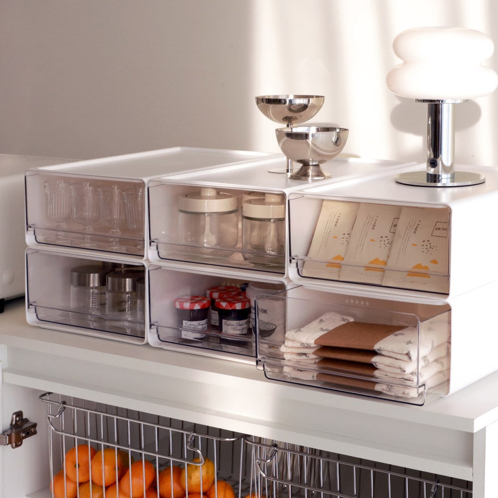 주방 수납 끝판왕! 1+1 큐브 팬트리수납함 다용도 적층식 서랍형 리빙박스