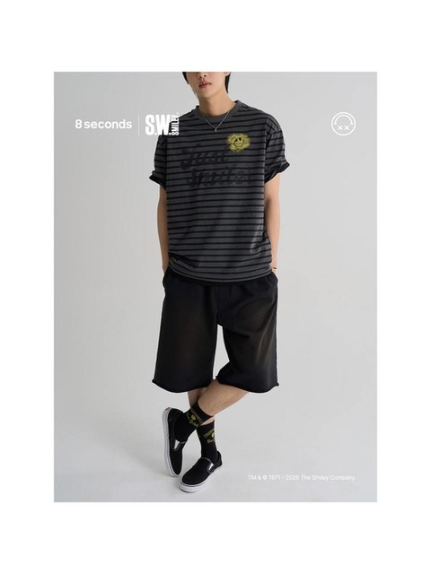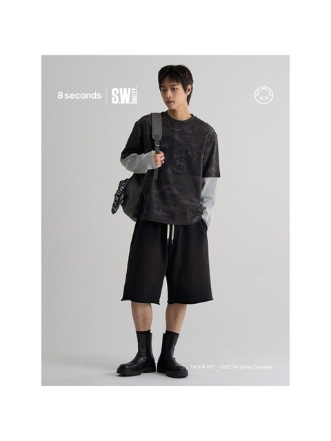 [에잇세컨즈] [유튜버 피로 PICK] S.W.SMILEY® 다잉 버뮤다핏 스웻팬츠블랙 (456325XCW5)
