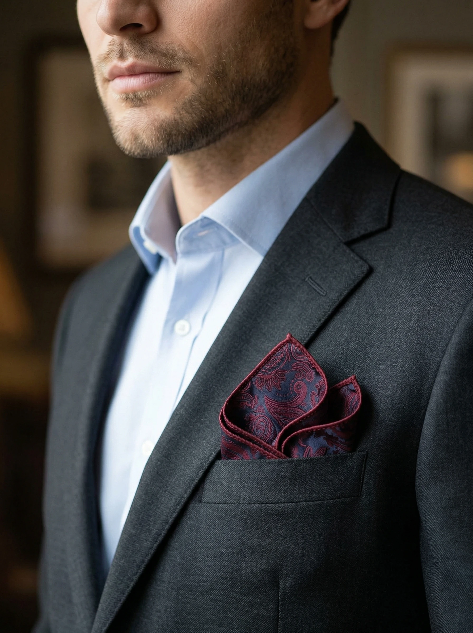 남성용 손수건, 남성용 영국풍 레트로 패턴 포켓 스퀘어, 정장 포켓 스퀘어