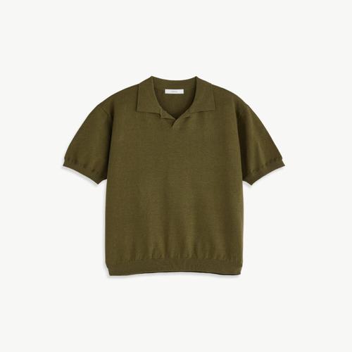 [STCO]린넨 혼방 오픈카라 반팔 니트_카키 (클래식핏)_BP_BP