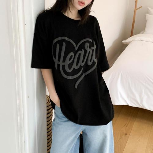 [다잇템]여성 발포하트 면혼합 빅사이즈 U넥 반팔티셔츠