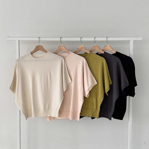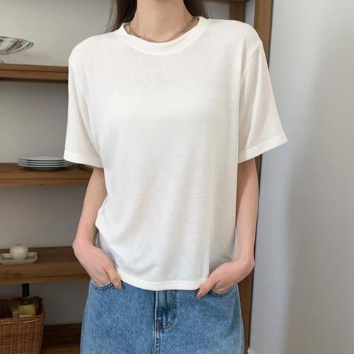 [다잇템]여성 클래식 U넥 실키 반소매 코지 티셔츠
