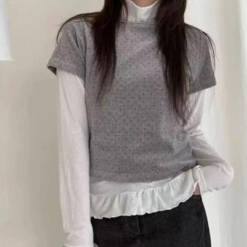 [다잇템]여성 U넥 점무늬 벨루어 탱크 반소매 티셔츠
