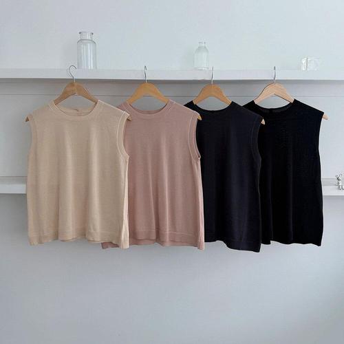 [다잇템]여성 스웨터 U넥 SS 슬리브리스 뒷버튼 티셔츠