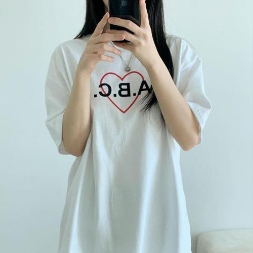 [브이와이][VY] 여자 엠티 박시핏 하트 필기체 수학여행 화이트 티셔츠_16431695_588847