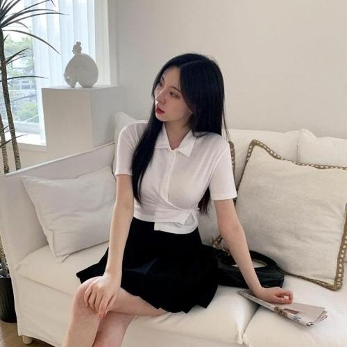 [브이와이][VY] 여자 탄력 카라 세미크롭 SS 수학여행룩 반소매 가디건_16504868_588847
