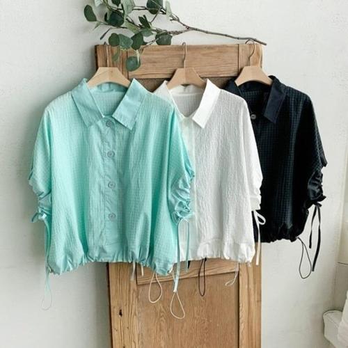 [브이와이][VY] 여자 SS 드로우코드 리본 밑단 수학여행룩 소매 블라우스_16504738_588847