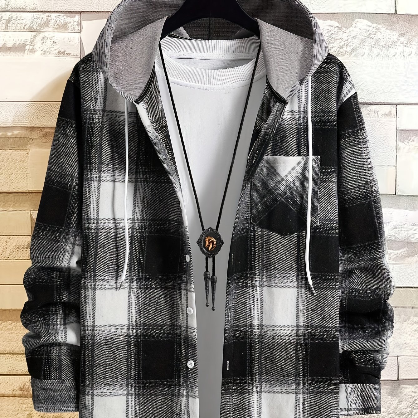 TEMU 남성 체크무늬 긴팔 후드 셔츠 재킷
